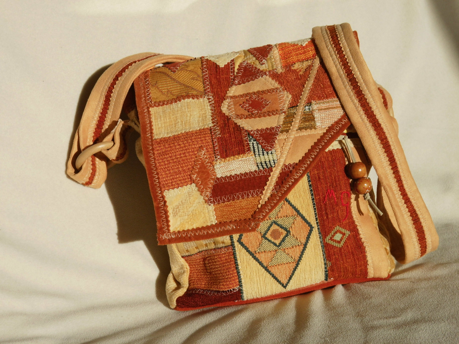 BxHxT ca. 20x27x4 cm2 aneinander genähte Taschen mit Klappe; Träger verstellbar